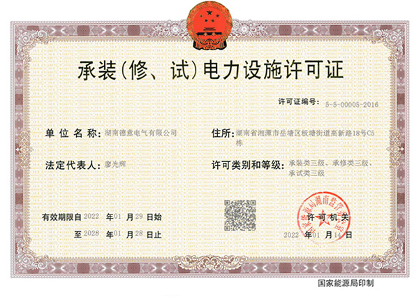 承裝(修、試)電力設(shè)施許可證