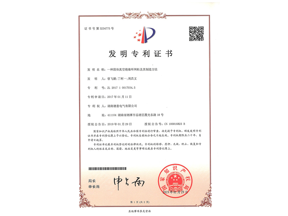 發(fā)明專(zhuān)利證書(shū)