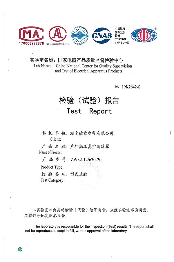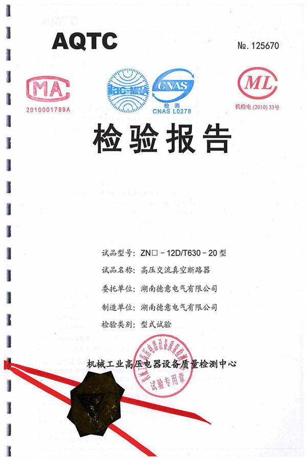 ZN□-12D/T630-20型高壓交流真空斷路器試驗(yàn)報(bào)告