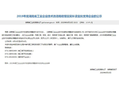6月10日,湖南省工信廳公示了2019年度湖南省工業(yè)企業(yè)技術(shù)改造稅收增量獎補資金擬支持企業(yè)名單,湘潭高新區(qū)共5家企業(yè)入選.......